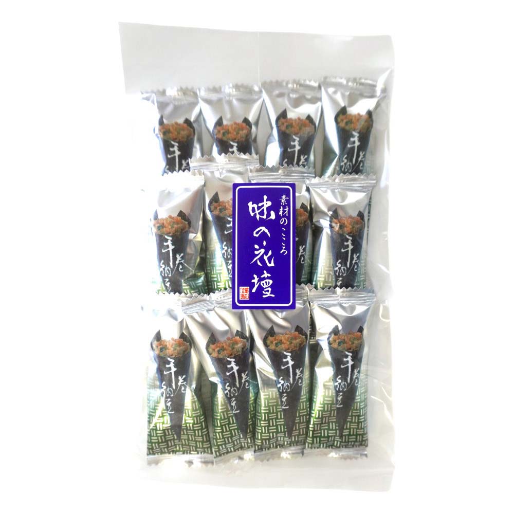 ドライ納豆を海苔で巻きました!健康食品である乾燥納豆と砕いたあられに醤油・からし・長葱で味付けし、手巻き寿司風にしたサクサク美味しい逸品です。