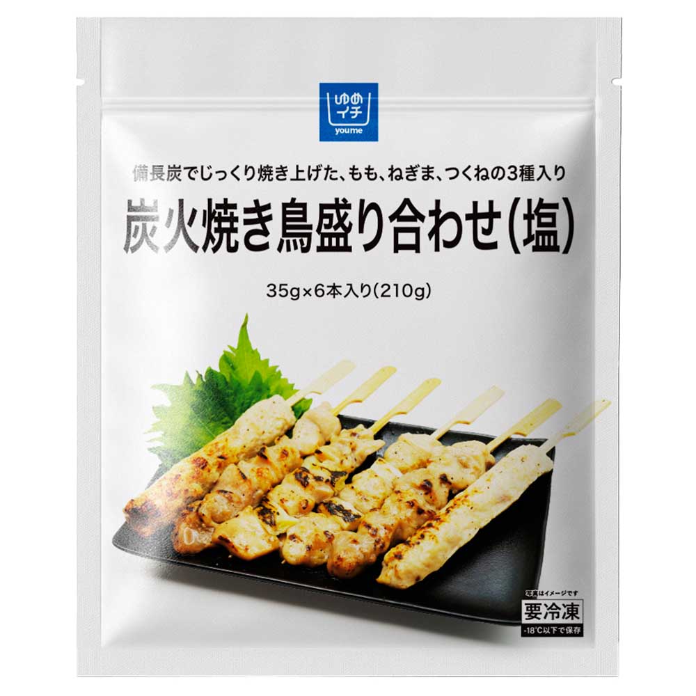 ゆめイチ 炭火焼き鳥盛り合わせ(塩) 6本(210g) *