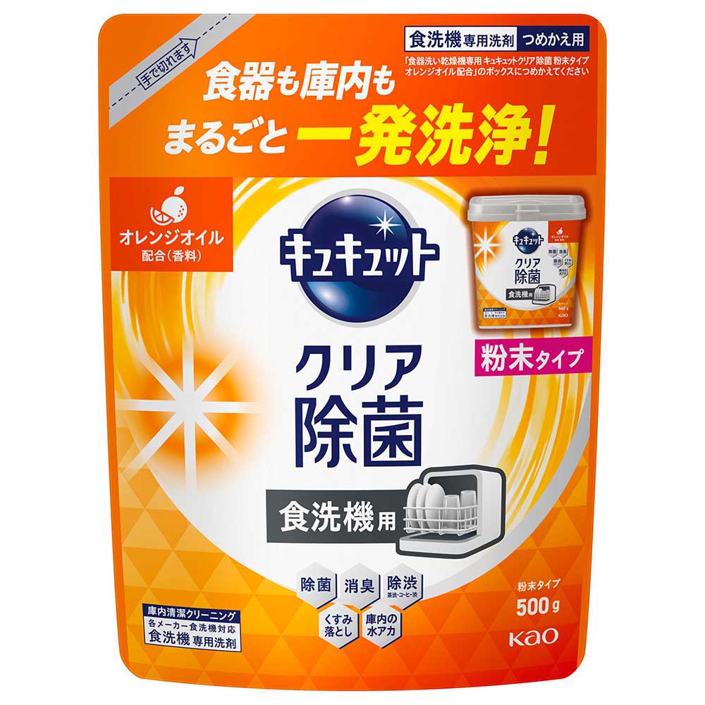 花王 食洗機用 キュキュットクリア除菌 粉末タイプ オレンジオイル配合 つめかえ用 500g