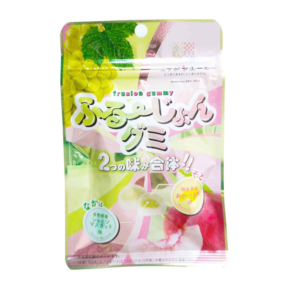 「ニッポンエール全国ご当地グミ総選挙2025」で1位に選ばれた「長野県産シャインマスカットグミ」と2位「福島県産あかつき桃グミ」を合体させたグミです。2種のフルーツの豊かな香り・甘みを表現したグミに仕上げました。